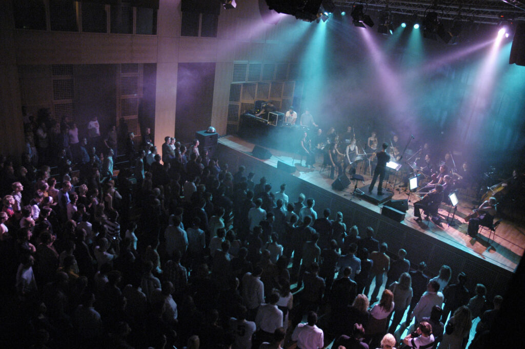 Diesmal die Elektronikkünstler Blank & Jones und der 30-jährige Dirigent Alexander Shelley der inzwischen zum Chefdirigenten der Nürnberger Symphoniker avanciert ist und das von ihm gegründete junge Düsseldorfer Orchester Schumann Camerata / Blank & Jones