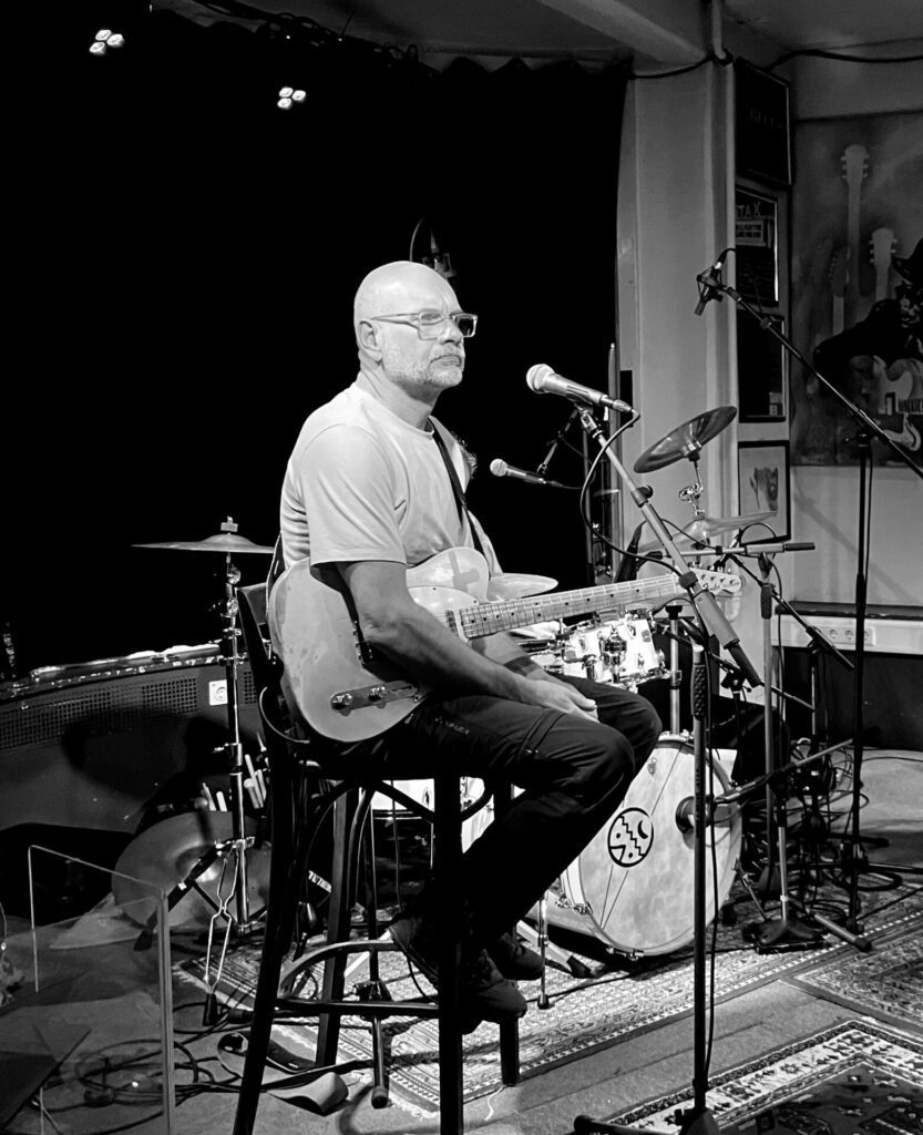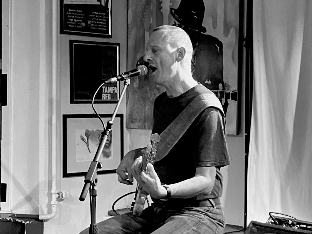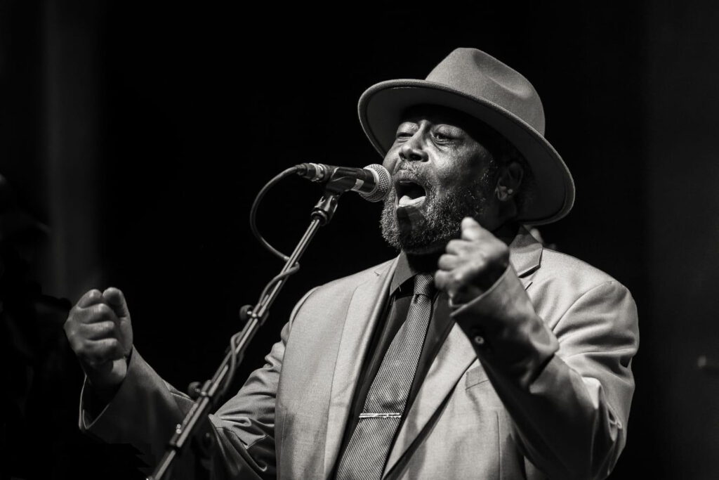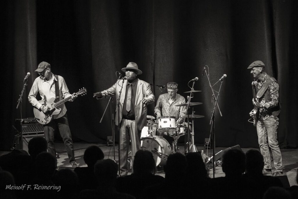 Startpunkt der Suche ist die tieftragende Stimme von Greg. Wenn er den Raum betritt, beeindruckt schon seine Statur; aber stimmt er den ersten Ton an, fühlt man sich gleich in die 69iger Jahre des vergangen Jahrhunderts versetzt, als Blues und Soul gemeinsam die Charts anführten. Von samtweich bis rau singt er den Blues und der Soul schwingt immer mit.